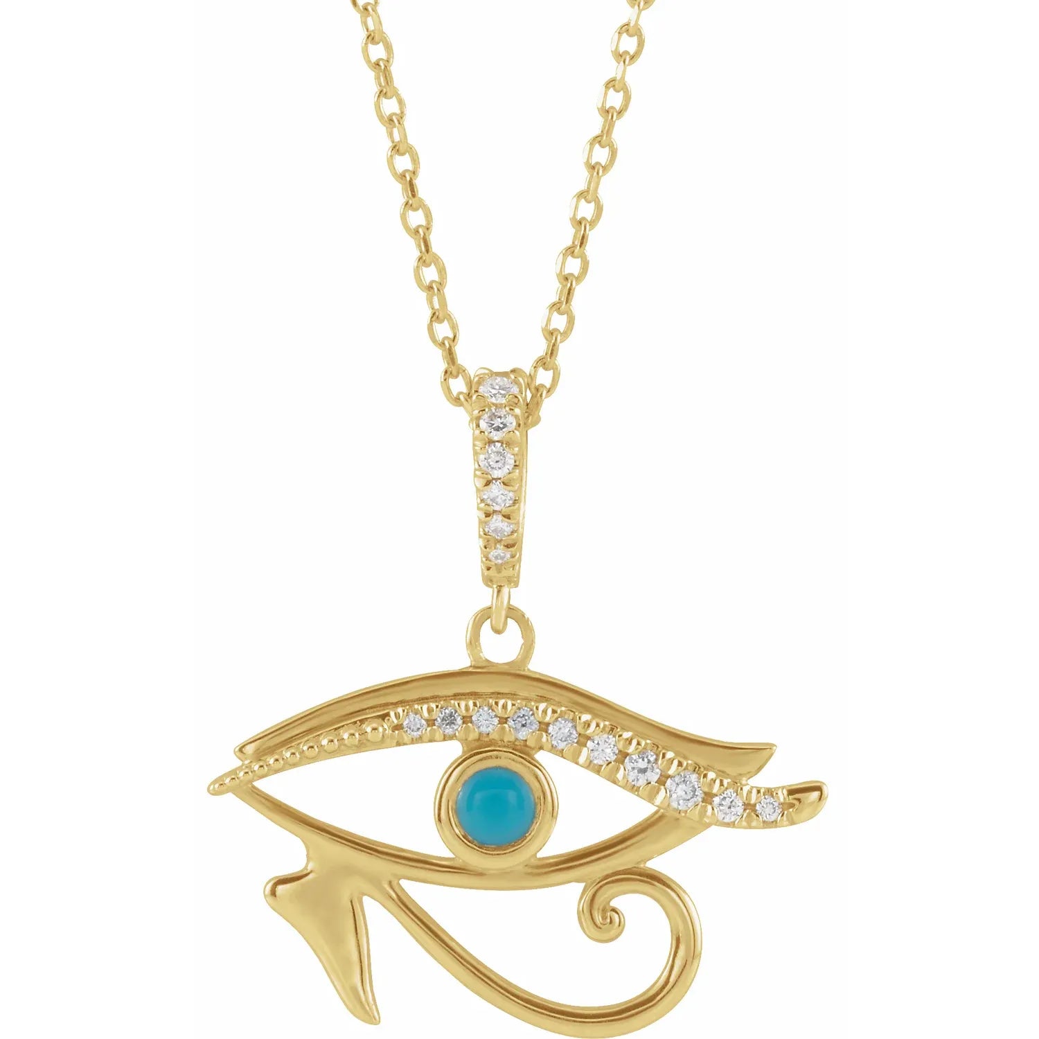 Eye of Horus with 16-18" Necklace 14K Yellow Gold Natural Turquoise & .08 CTW Natural Diamond